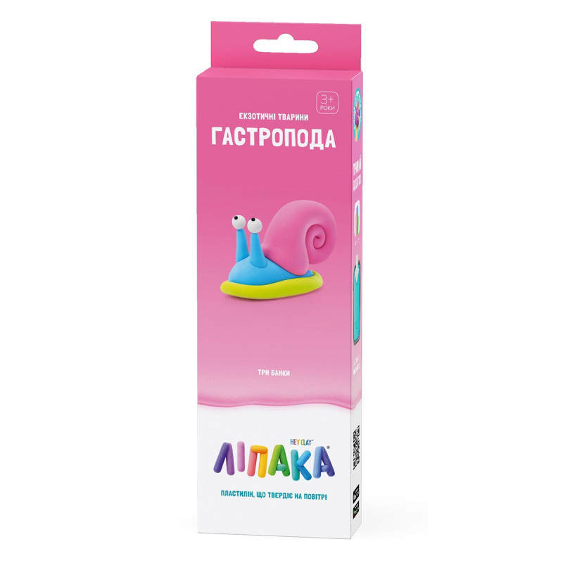 Набір пластиліну, що самостійно твердіє, ЛІПАКА - ЕКЗОТИЧНІ ТВАРИНИ: ГАСТРОПОДА – розважить і малюків і дорослих. За допомогою анімаційних інструкцій в застосунку HEY CLAY, Ви зможете зліпити кумедну гастроподу. А завдяки компактним розмірам, набір зручно брати з собою. Пластилін твердіє на повітрі протягом 24 годин, після чого можна гратися створеними фігурками.