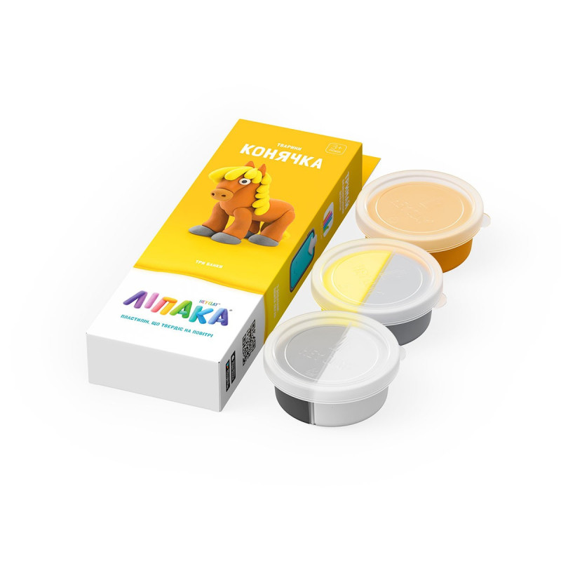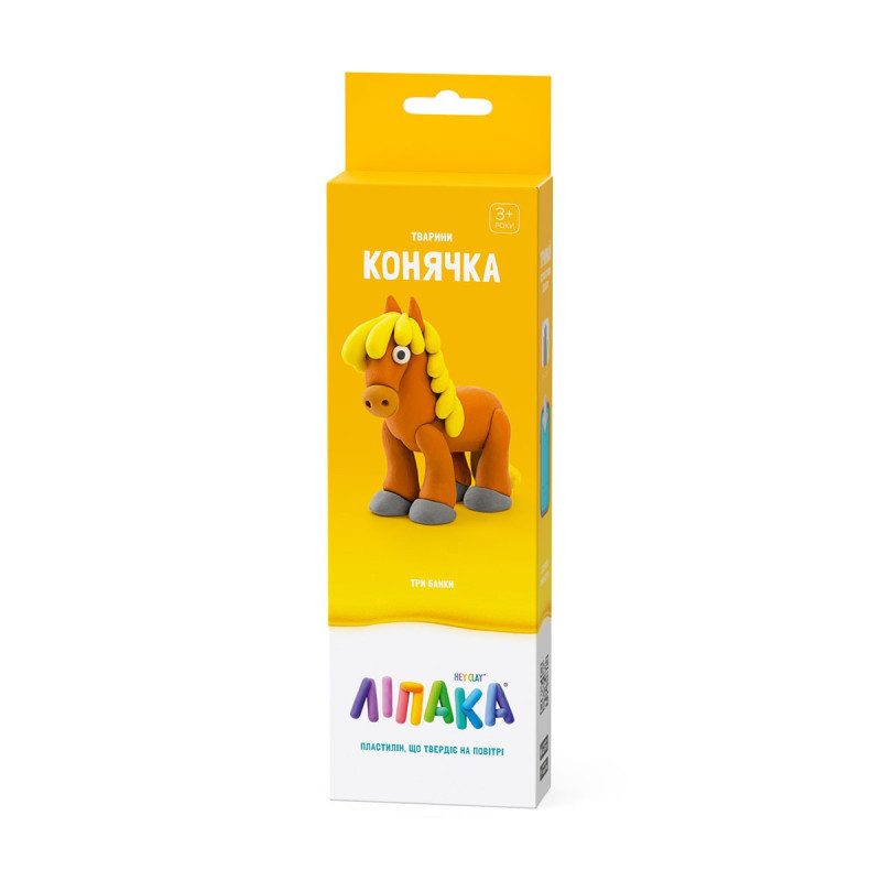 Набір пластиліну, що самостійно твердіє, ЛІПАКА – КОНЯЧКА – розважить і малюків і дорослих. За допомогою анімаційних інструкцій в додатку HEY CLAY, Ви зможете зліпити кумедну конячку. А завдяки компактним розмірам, набір зручно брати з собою. Пластилін твердіє протягом 24 годин, після чого можна гратися створеною фігуркою.