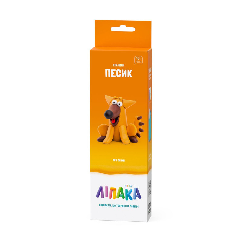 Набір пластиліну, що самостійно твердіє, ЛІПАКА – ПЕСИК– розважить і малюків і дорослих. За допомогою анімаційних інструкцій в додатку HEY CLAY, Ви зможете зліпити кумедного песика. А завдяки компактним розмірам, набір зручно брати з собою. Пластилін твердіє на повітрі протягом 24 годин, після чого можна гратися створеними фігурками.