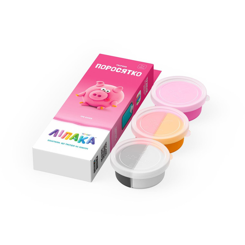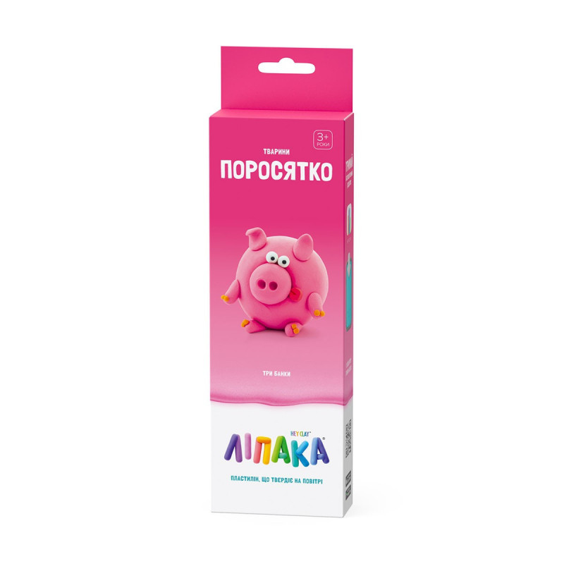 Набір пластиліну, що самостійно твердіє, ЛІПАКА – ПОРОСЯТКО – розважить і малюків і дорослих. За допомогою анімаційних інструкцій в додатку HEY CLAY, Ви зможете зліпити кумедне поросятко. А завдяки компактним розмірам, набір зручно брати з собою. Пластилін твердіє протягом 24 годин, після чого можна гратися створеною фігуркою.