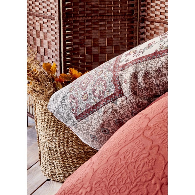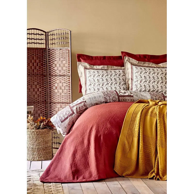 Набір постільної білизни з покривалом + плед Karaca Home - Maryam bordo 2020-1 бордовий євро