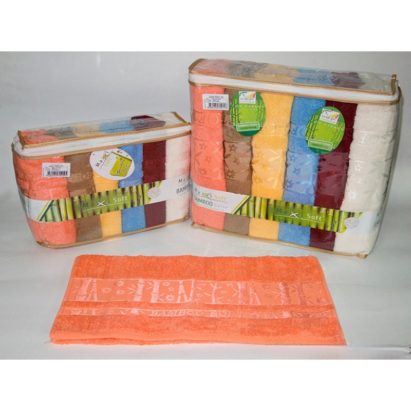 Набір із 6-ти рушників різних кольорів у ПВХ упаковці на блискавці.