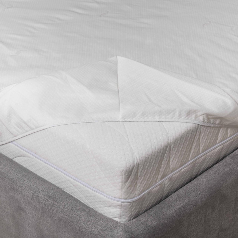 Наматрацник виготовлений із якісних міцних матеріалів. Трикотажне полотно з водонепроникною мембраною добре захищає матрац від намокання. Захисна мембрана, яка запобігає проникненню рідини, м'яка, безшумна та безпечна для здоров'я. За допомогою гумок вшитих у борт наматрацник чудово фіксується на матраці, не сповзає і створює рівну поверхню.