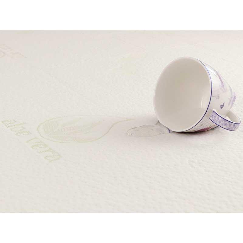 Водонепроникний наматрацник Aloe Vera використовується для захисту матраца від вологи або пролитої рідини. Завдяки поліуретановій мембрані, рідина не проникає на поверхню матраца або дивана, тим самим продовжуючи його термін використання. Наматрацник при своїх водовідштовхувальних властивостях не знижує комфортності виробу.Тканина наматрасника просочена концентратом Aloe Vera, який запобігає зростанню мікроорганізмів, цвілі і грибків, гігієнічний і простий у догляді. За рахунок гумок по кутах, наматрацник легко кріпиться на матрац, диван або ліжко.