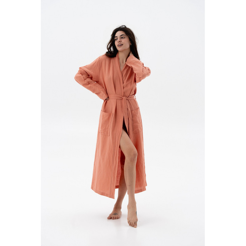 Халат-кімоно з льону Lotus Home — Madrida лососевий XS