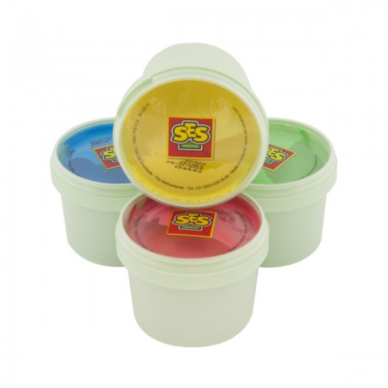- 4 баночки з фарбами. Кольори: синій, червоний, жовтий і зелений.