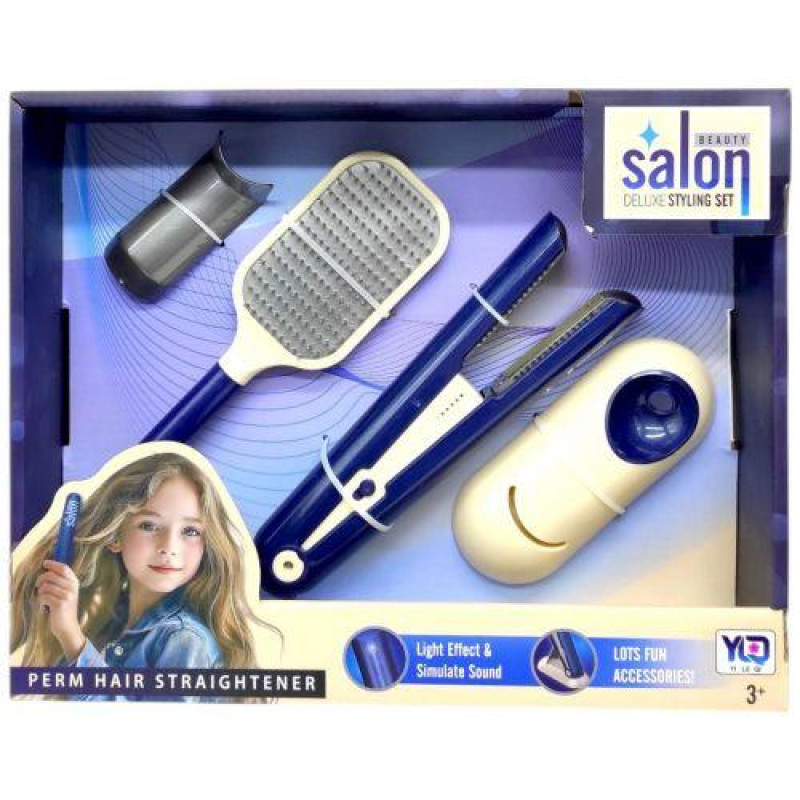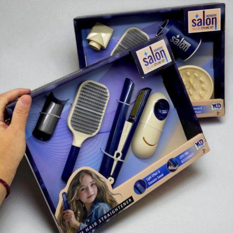 Перукарський набір для справжньої любительки моди! Ваша дитина відчує себе майстром-перукарем, коли буде створювати нові цікаві зачіски із цими іграшковими інструментами для догляду за волоссям. Усі елементи набору виконані деталізовано й реалістично, але безпечно для малюка Завдяки цьому із цим набором можна грати не тільки із ляльковим волоссям, але й з реальним, адже іграшка йому не зашкодить! До набору входить гребінець, та плойка для волосся, яка підсвічується та імітує звук справжнього, в комплекті є спеціальна підставка для нього.
