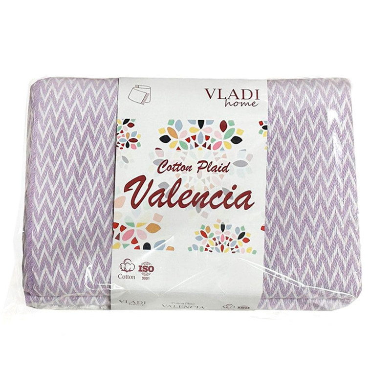 Плед бавовняний Vladi - Валенсія №1 Antonio біло-ліловий 170*210 двоспальний
