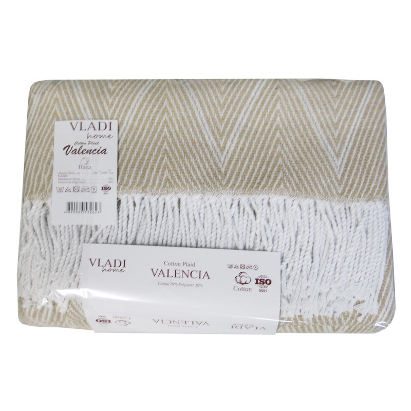 Плед бавовняний Vladi — Валенсія No240S Vivi біло-пісочний 140*200 полуторний