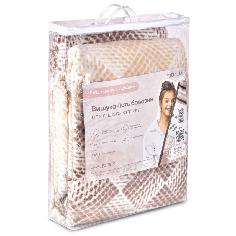 Висока якість виконання та стильний дизайн. Бавовняні пледи від IDEIA виготовлені на виробничих потужностях відомих турецьких текстильних компаній на замовлення торгової марки IDEIA. Вони мають стійкий колір, модні принти, м’які, приємні на дотик, що робить їх справжньою прикрасою для будь-якої оселі.