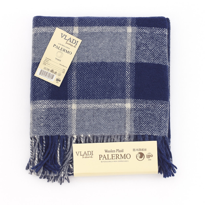 Плед вовняний Vladi - Палермо №7 Sofa біло-сіро-блакитний-кобальт 140*200 полуторний