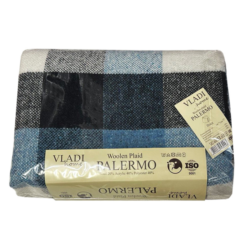 Плед вовняний Vladi - Палермо №8 Pictor біло-сіро-блакитний-св.синій 140*200 полуторний