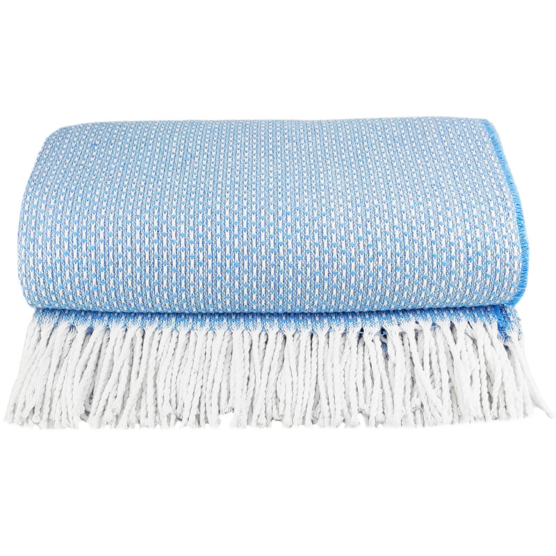 Плед бавовняний Vladi - Валенсія №13 Boucle біло-сіро-блакитний 200*220 євро