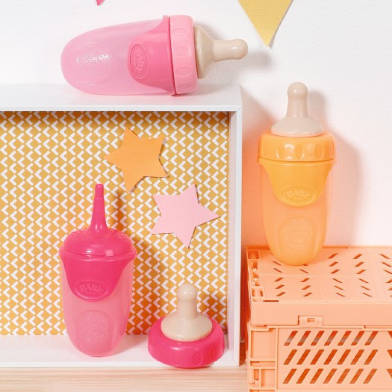 Тепер годувати малятко BABY born стало ще веселіше! У пляшечки новий дизайн і в руці тепер вона лежить ще зручніше. Крім того, нова форма гарантує, що ви краще контролюєте пляшечку і дитина не буде пити занадто швидко або ковтати повітря. Після використання обов'язково закрийте пляшку кришкою.