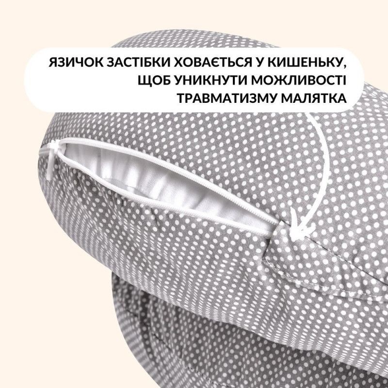 Захисна спинка та фіксувальна на тілі жінки роблять подушку максимально зручною у використанні. Забезпечують гарний рівень комфорту та дають змогу прийняти різні пози для годування.