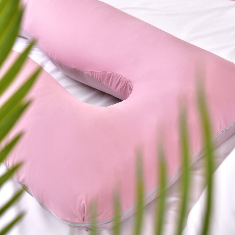 П-подібна конструкція підтримує шию, спину, коліна. Оптимальне рішення для відпочинку вагітних жінок. Внутрішні вигини подушки повторюють форму тіла людини. Подушка підтримує живіт, допомагає зручно розміститися. Забезпечує максимальне розслаблення під час сну та відпочинку. Знімає напругу в м`язах, навантаження на суглоби та на спину.