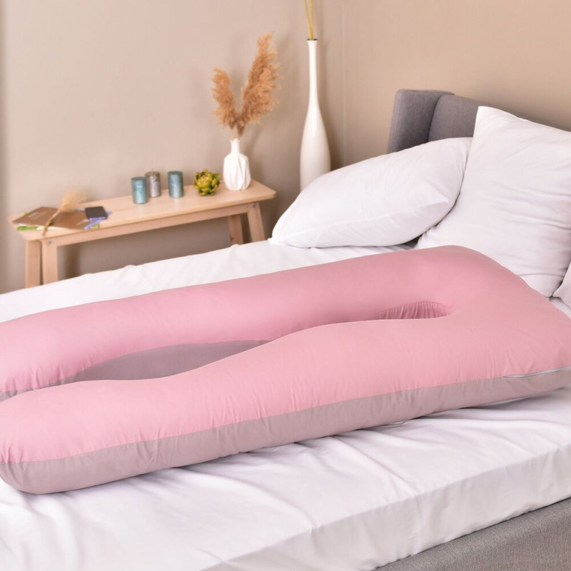 Подушка довга IDEIA 140х75х20 - П-подібна для сну та відпочинку з наволочкою на блискавці пудра/сірий