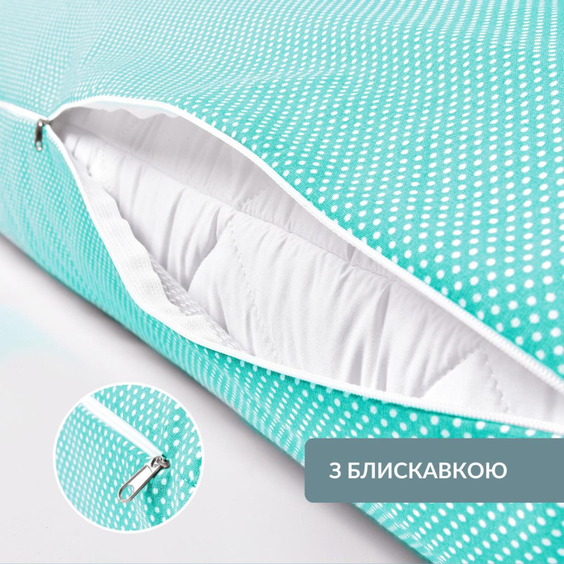 Подушка легко чиститься і підтримується в чистоті завдяки знімній наволочці з блискавкою.