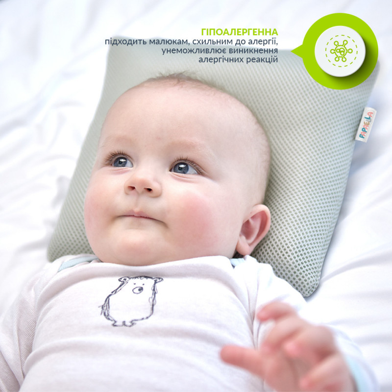 Подушка дитяча ортопедична PAPAELLA — розробка української компанії, призначена для дбайливих батьків. Її наявність гарантує спокійний, комфортний і здоровий сон вашого малюка. Її конструкція сприятливо впливає на формування спинного та шийного хребців, запобігає деформації черепа в немовлят. Її матеріали — безпечні для здоров'я, приємні на дотик, красиві на вигляд, прості в догляді.