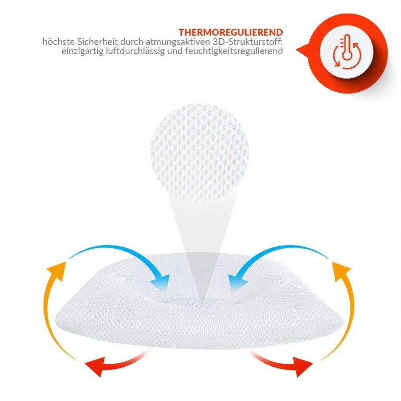 Чохол подушки дитячої ортопедичної PAPAELLA має антиалергенні та антибактеріальні властивості. Він дихає, що гарантує надходження повітря й відведення зайвого тепла від головки малюка. Він розрахований на прання в машинці автомат. Для додаткової зручності до комплекту входить наволочка з приємної й безпечної бавовни, що відповідає унікальній формі виробу.