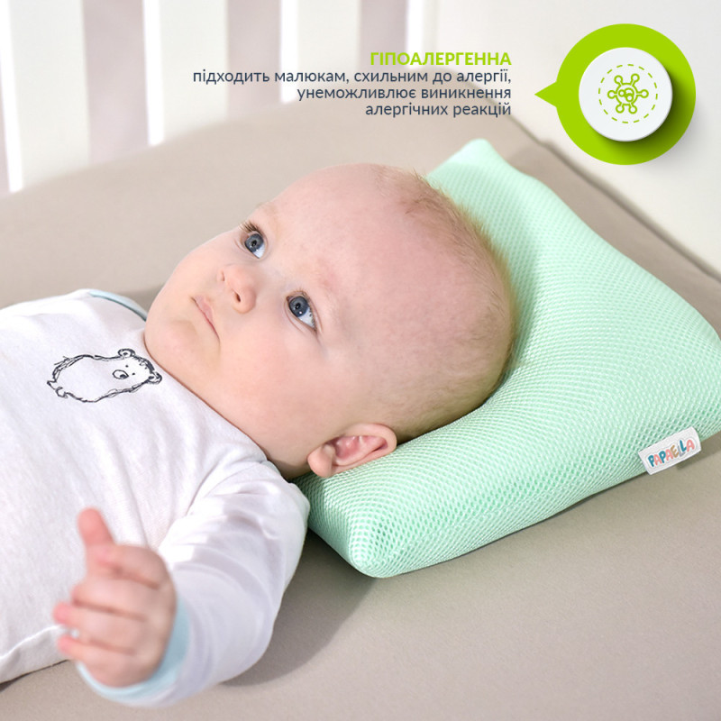 Подушка дитяча ортопедична PAPAELLA — розробка української компанії, призначена для дбайливих батьків. Її наявність гарантує спокійний, комфортний і здоровий сон вашого малюка. Її конструкція сприятливо впливає на формування спинного та шийного хребців, запобігає деформації черепа в немовлят. Її матеріали — безпечні для здоров'я, приємні на дотик, красиві на вигляд, прості в догляді.