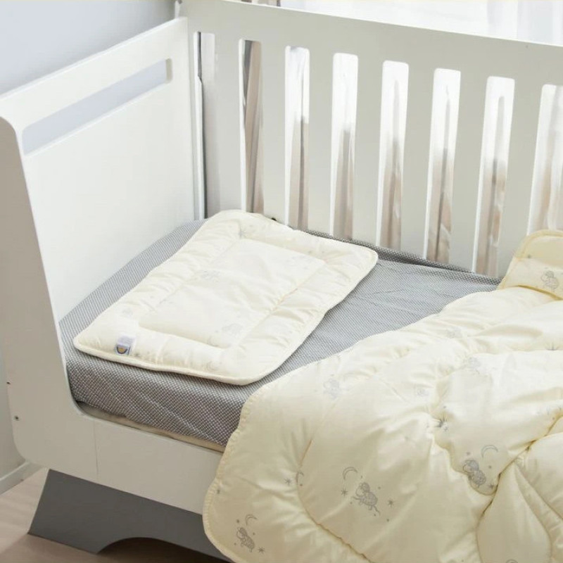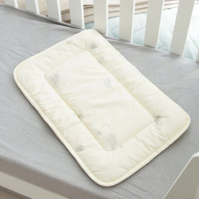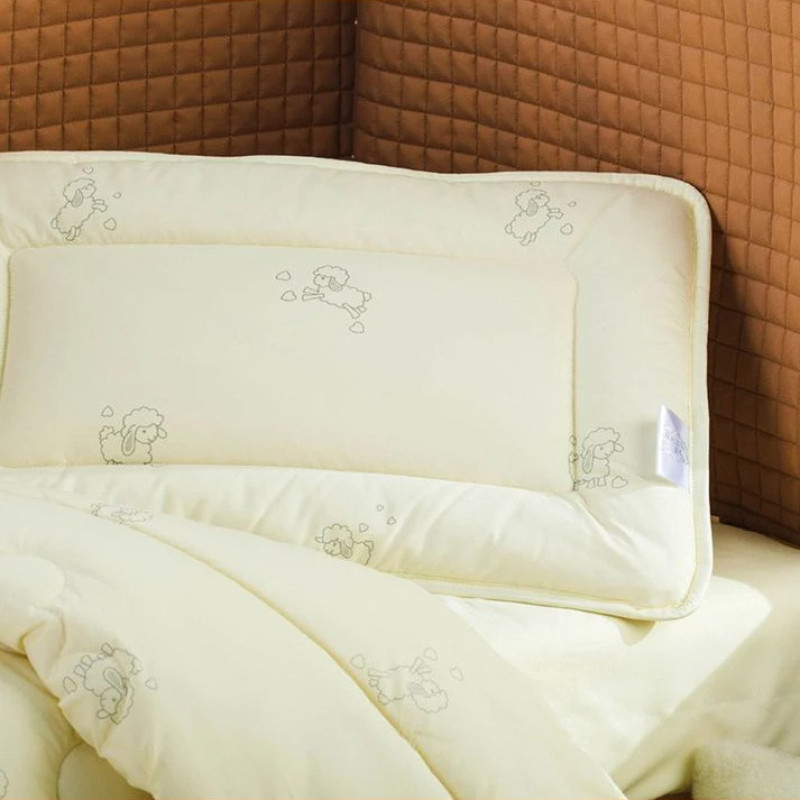 Подушка для дітей від 3 міс. - тонка подушечка в ліжечко з наповнювачем з овечої вовни. Тканина чохла м'яка та приємна на дотик. Повітропроникна подушка з натуральним наповнювачем має чудові теплозахисні властивості. Спеціальна технологія стьобання покращує якісні гарактристики виробу, зберігаючи подушку пишною.