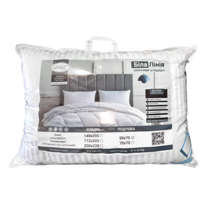 Чохол подушки виконаний із високоякісної мікрофібри, а наповнювач – штучний лебединий пух. Подушки зі штучного лебяжого пуху призначені для максимального комфорту та здорового сну. Вони гіпоалергенні, довговічні, відрізняються приємною м'якістю та легкістю. Завдяки властивостям наповнювача подушки адаптуються до форми голови та шиї, після використання швидко відновлюють об'єм.