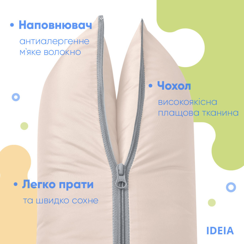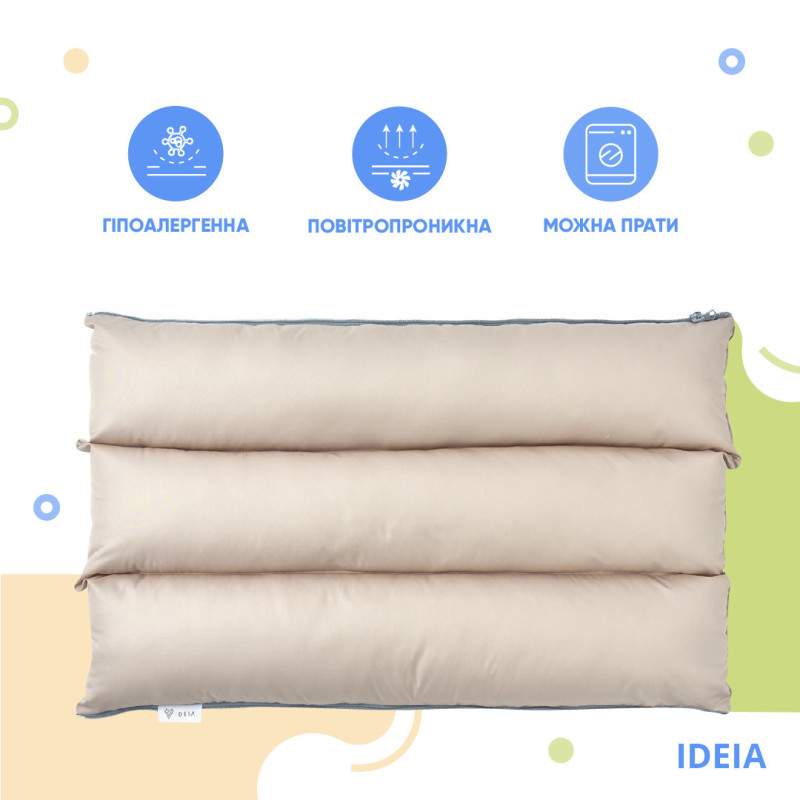 Наповнювач - антиалергенне м'яке волокно, що робить подушку пружною, легкою та гнучкою.
