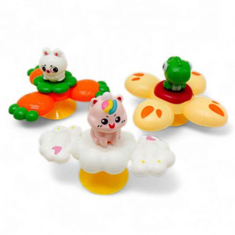 Дитяча іграшка-брязкальце у вигляді спіннера на присосці. Набір з трьох штук включає спіннери з 2, 3 та 4 секціями. Іграшки яскраві, безпечні та легко кріпляться на будь-яку гладку поверхню, стимулюючи розвиток моторики та сенсорних навичок у дітей. Іграшки безпечні для малюків, виготовлені з високоякісних та нетоксичних матеріалів.