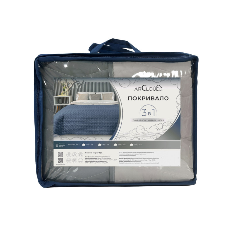 Покривало ArCloud — ZigZag Porpoise/Steel Gray стьобане двостороннє 180*215 двоспальне