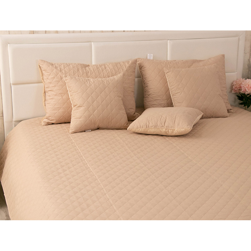 Покривало двостороннє Руно 220x240 см - Велюр Beige бежевий ромб (26082)