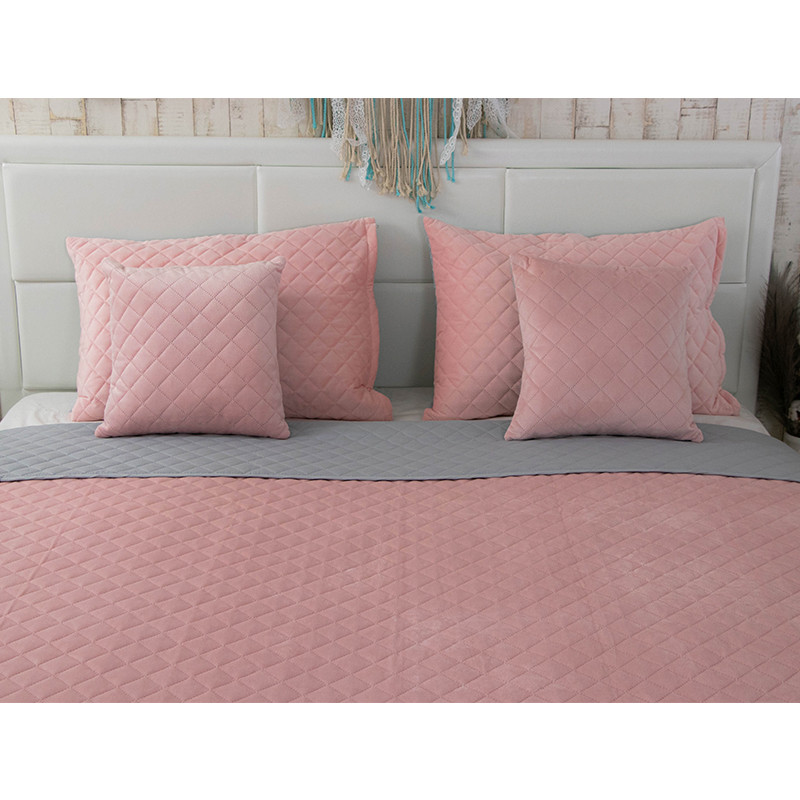 Покривало двостороннє Руно 220x240 см - Велюр Pink and Grey рожевий ромб (28050)
