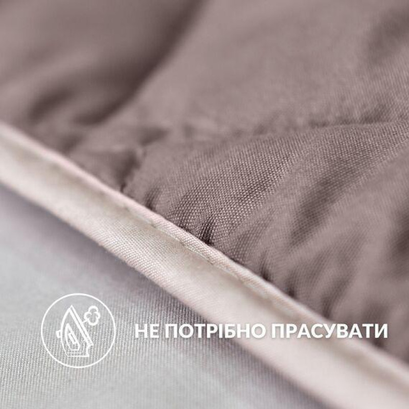 Матеріал верху - мікрофібра щільністю 100 г/м2. Це сучасна, приємна на дотик, добре дихаюча тканина, яка не вбирає вологу і вирізняється високою зносостійкістю. Завдяки міцній стежці наповнювач рівномірно розподілений і не збивається, навіть після багаторазового прання.