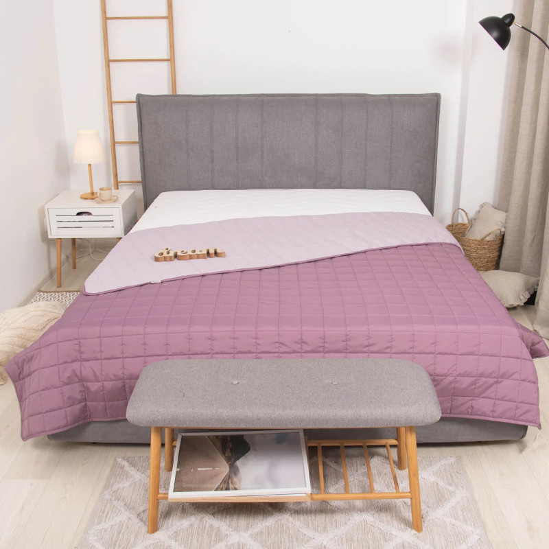 Покривало двостороннє, має різний колір із кожного боку. Можна накривати ліжко будь-якою стороною залежно від Ваших уподобань.