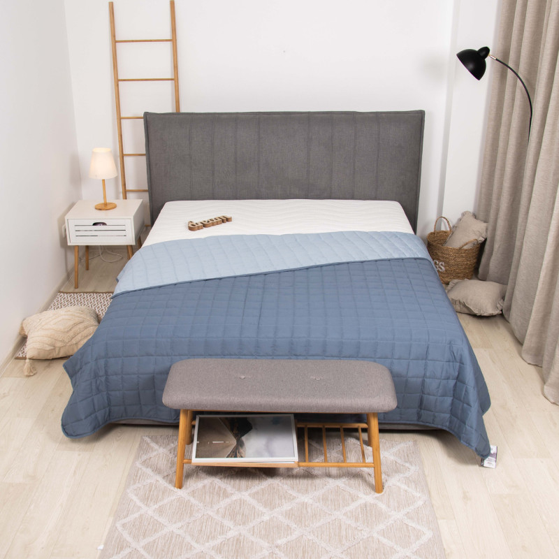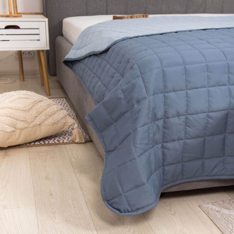Покрывало двустороннее, имеет разный цвет с каждой стороны. Можно накрывать кровать любой стороной в зависимости от Ваших предпочтений.