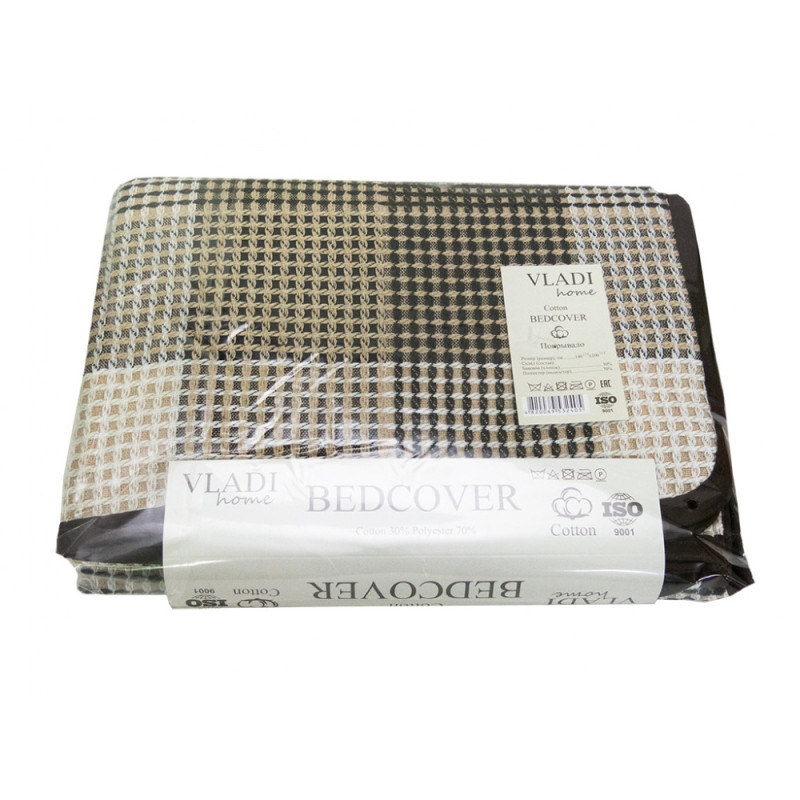 Покривало Vladi бавовняне літнє клітинка 140*200 полуторне біло-пісочно-касторове оптом
