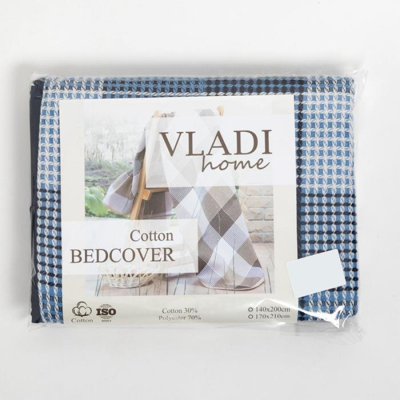 Покривало Vladi - BOB біло-сіро-блакитне-св.синє 170*210 двоспальне
