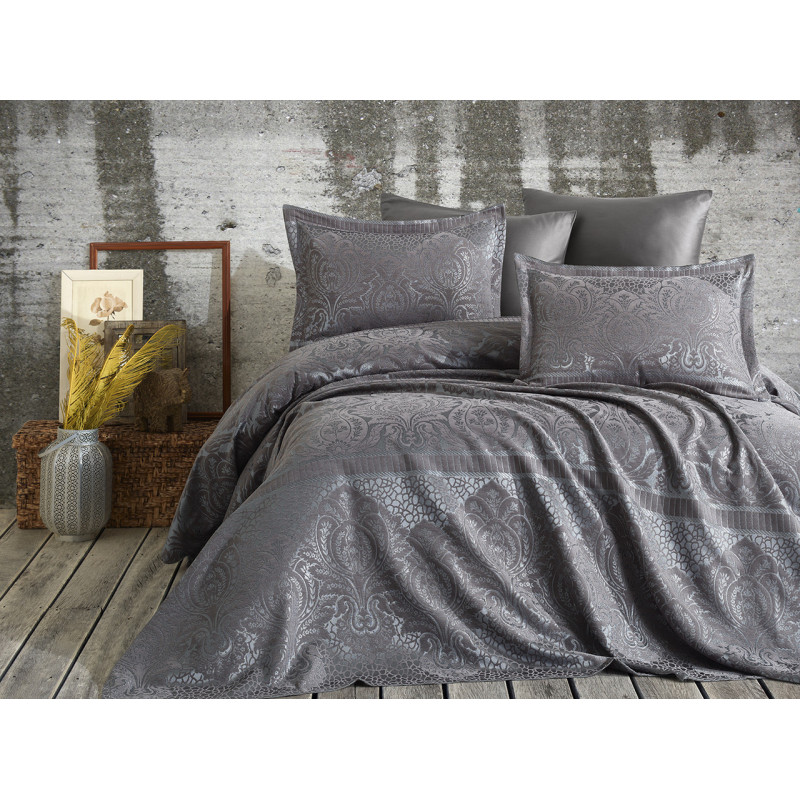 Покривало жаккард із наволочками Dantela Vita - Hazel antrasit антрацит євро 260*260