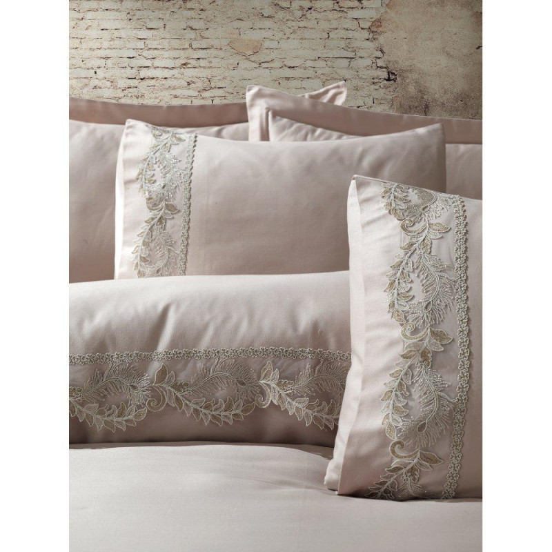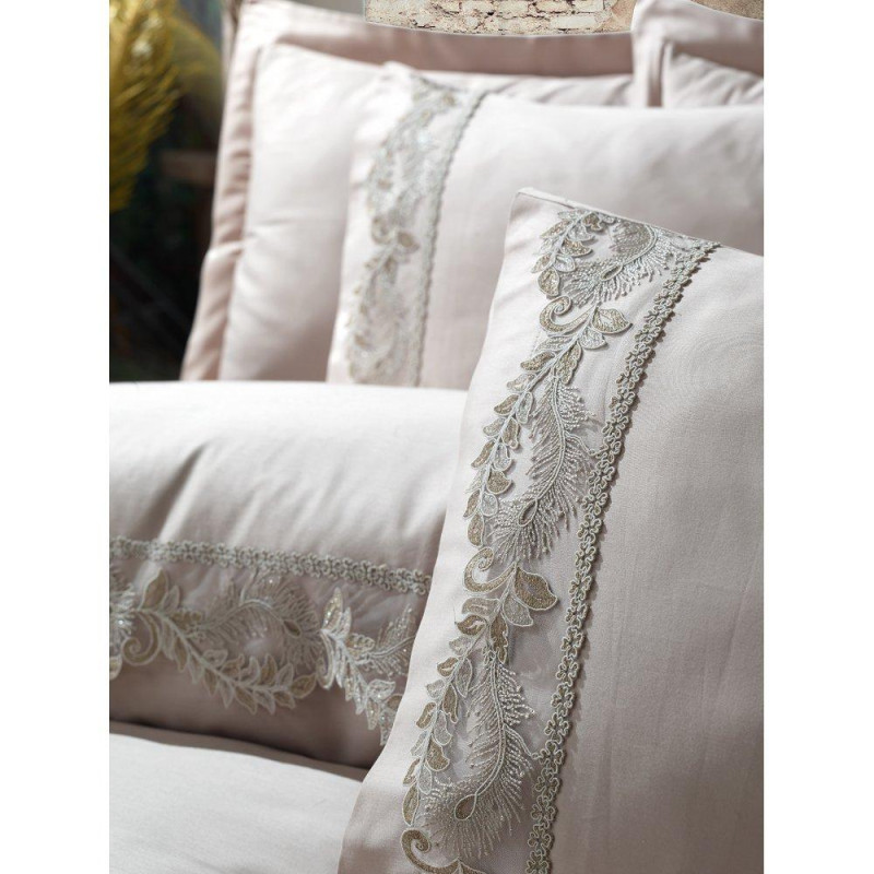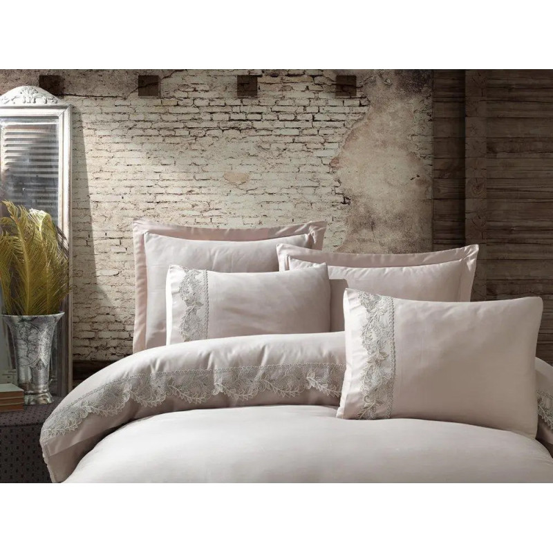 Постільна білизна Dantela Vita сатин з мереживом - Inci bej бежевий євро