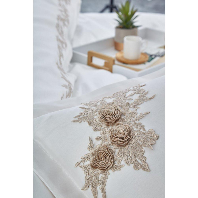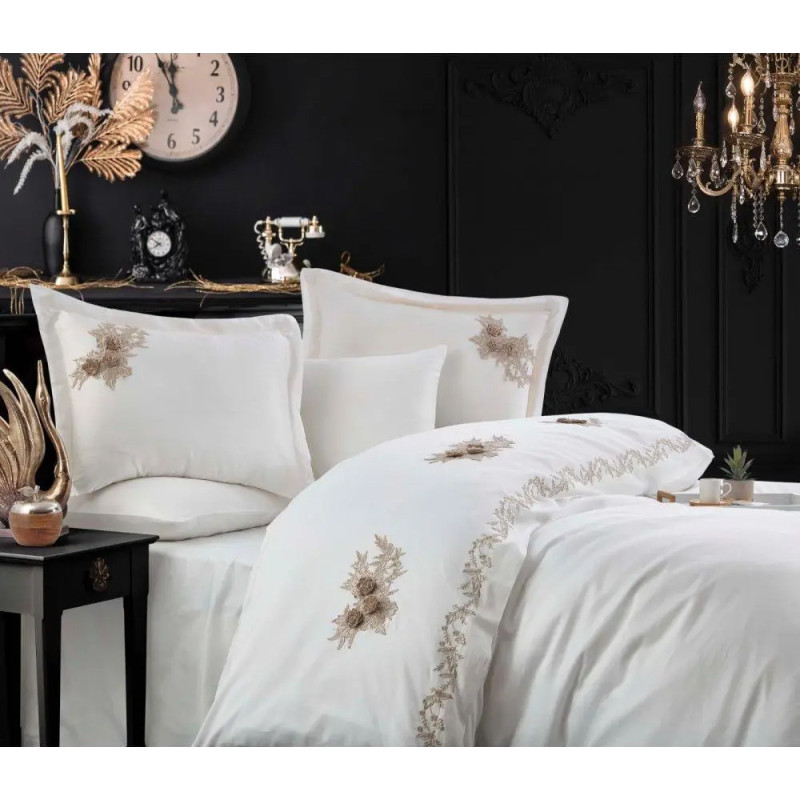 Постільна білизна Dantela Vita сатин з мереживом - Safir krem кремовий євро