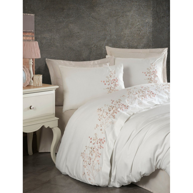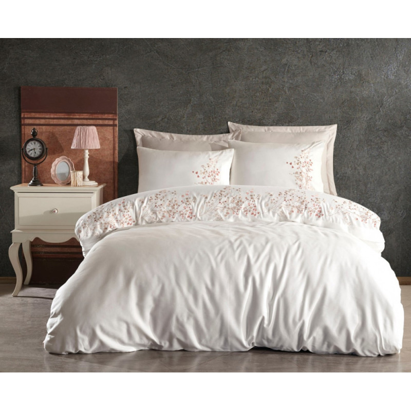 Постільна білизна Dantela Vita сатин з вишивкою - Alya krem крем євро