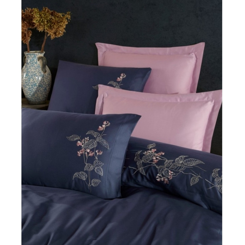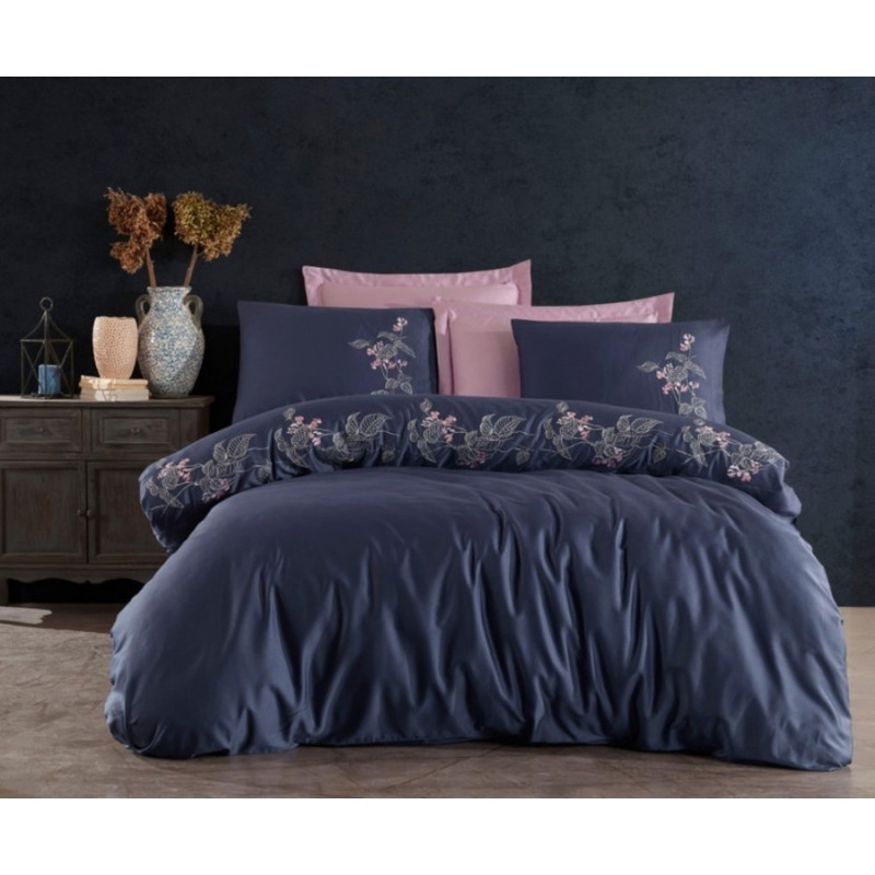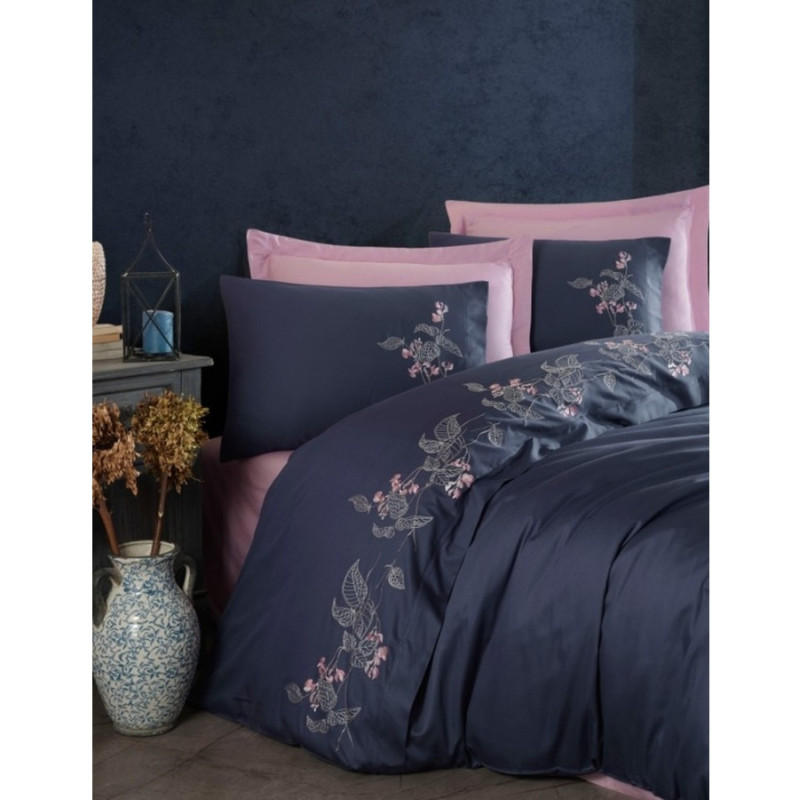 Постільна білизна Dantela Vita сатин з вишивкою - Efra lacivert синій євро