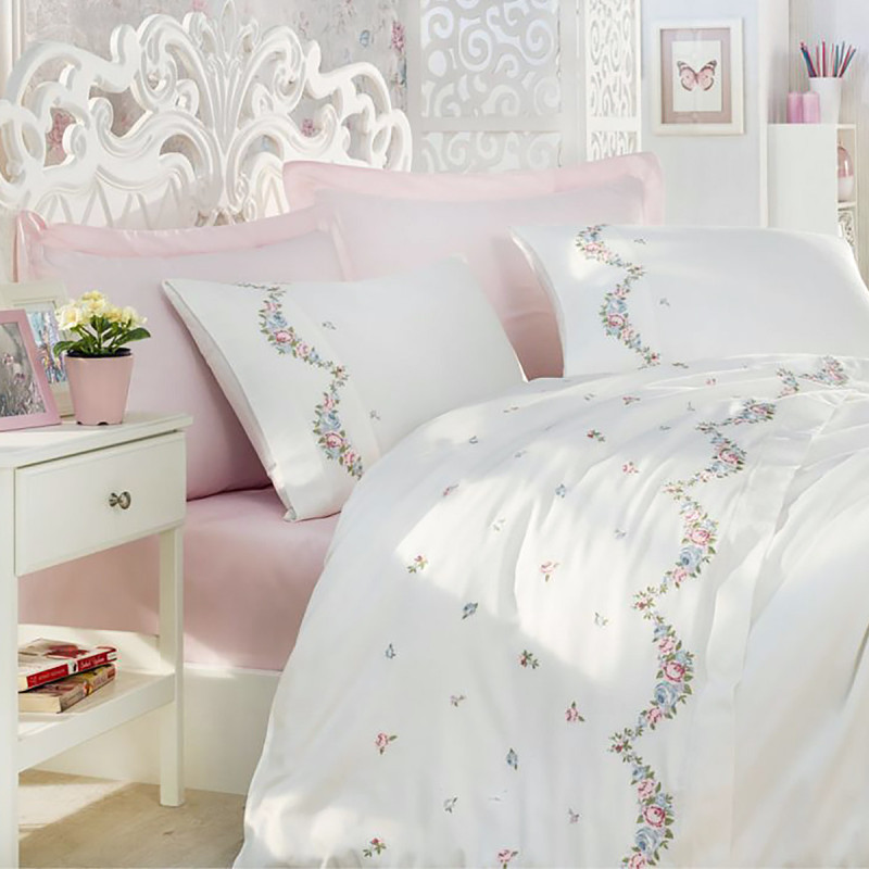 Постільна білизна Dantela Vita сатин із вишивкою — Lara krem кремовий євро