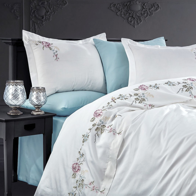 Постільна білизна Dantela Vita сатин з вишивкою — Ruya krem кремовий євро