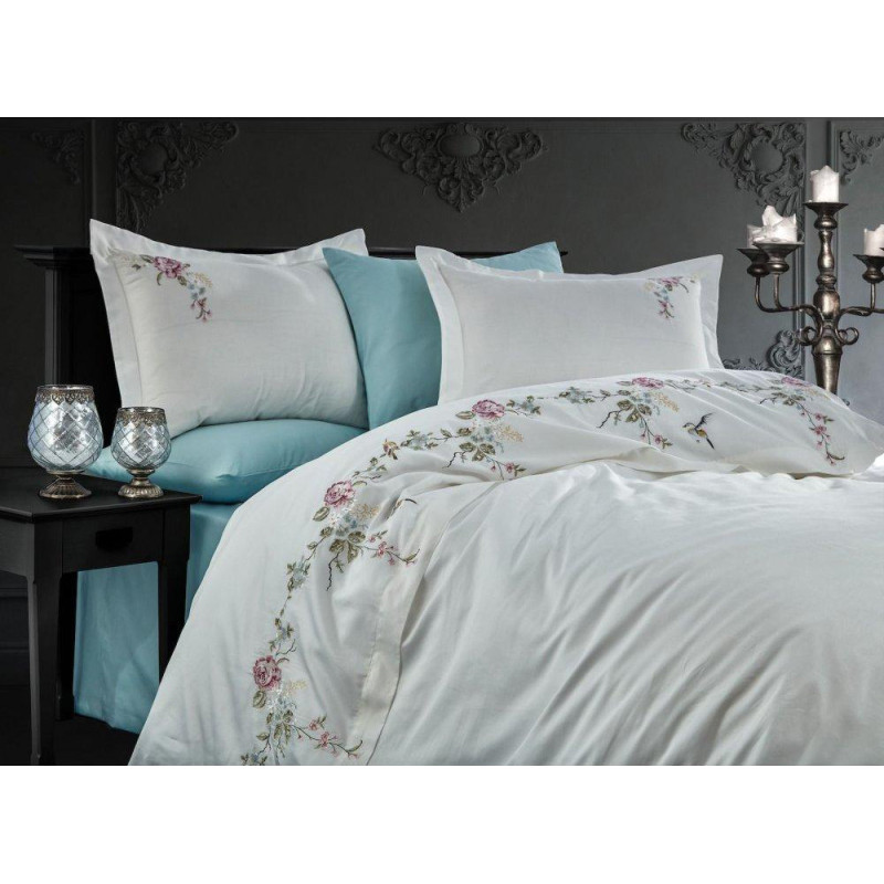 Постільна білизна Dantela Vita сатин з вишивкою - Ruya krem кремовий сімейна