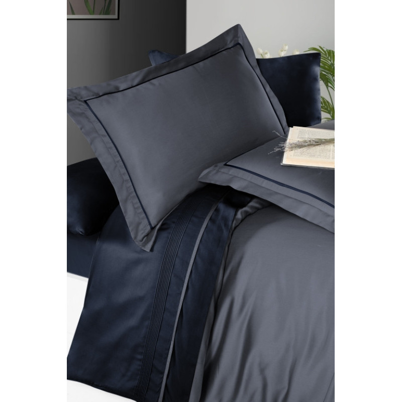 Постільна білизна First Choice сатин Dark Deluxe — Serenity dark grey — navy blue євро