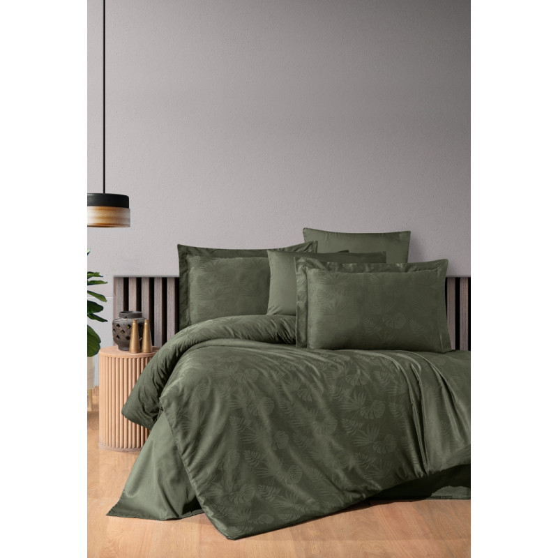 Постільна білизна First Choice сатин Dark жакард — Nichol dark green євро