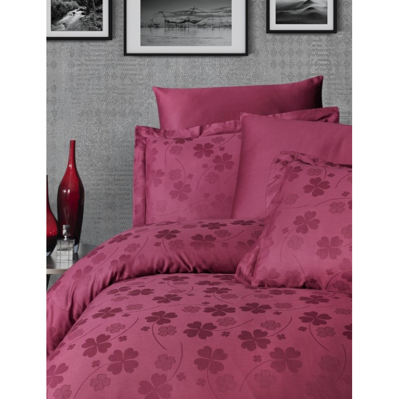 Постільна білизна First Choice сатин Dark жаккард - Clover бордо євро