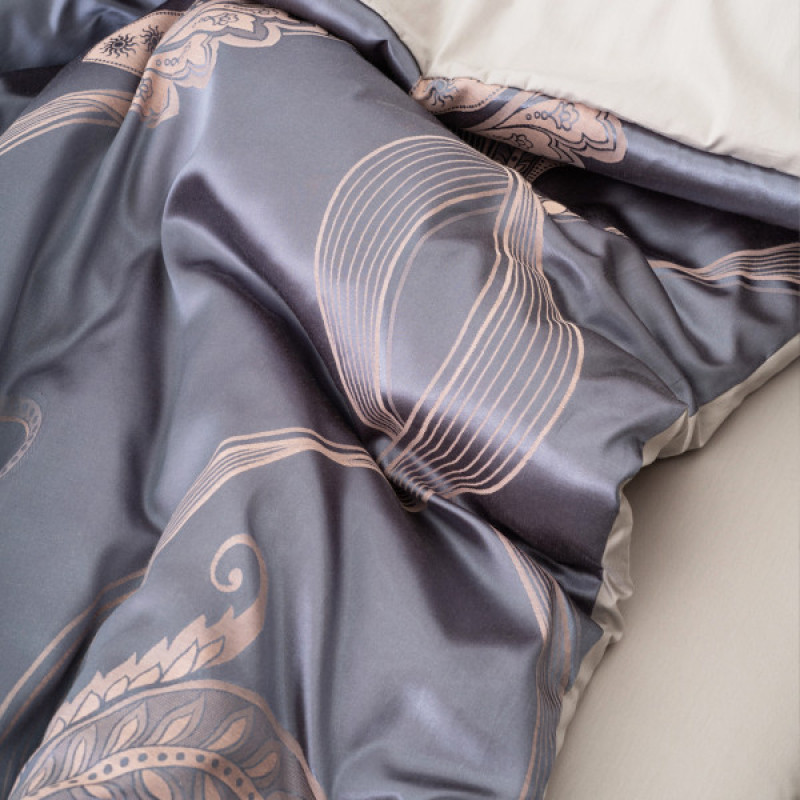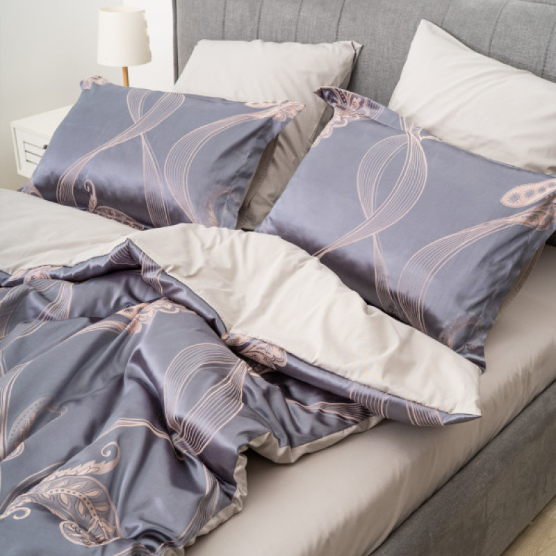 Підковдра — двосторонній (верх — жакардова тканина, низ — однотонна гладь сатин люкс), застібка блискавка.