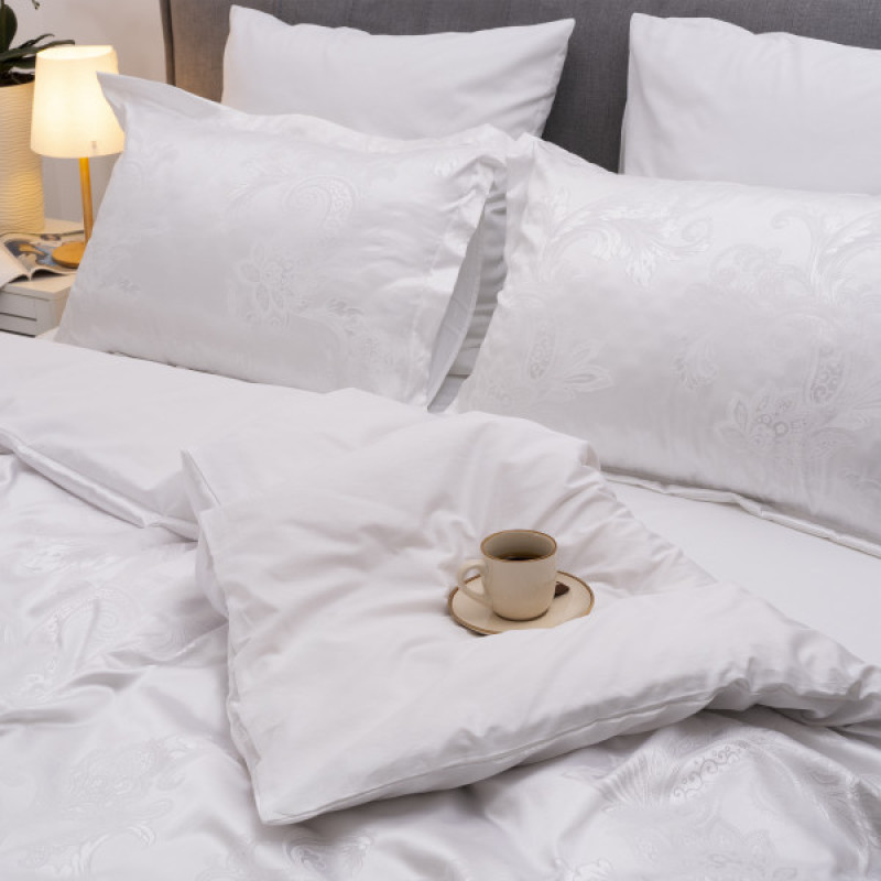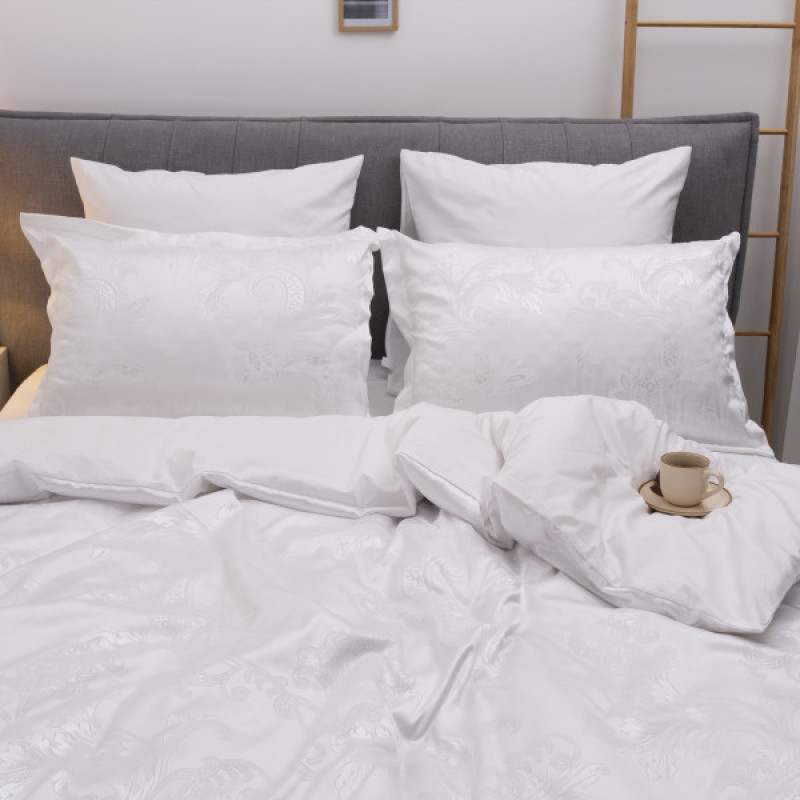 Наволочки 4 шт: 50*70+4 см. (2 шт) з кантом по краю, верх - жакардова тканина, низ - однотонна гладь; 70*70 см. (2 шт) - однотонна гладь.